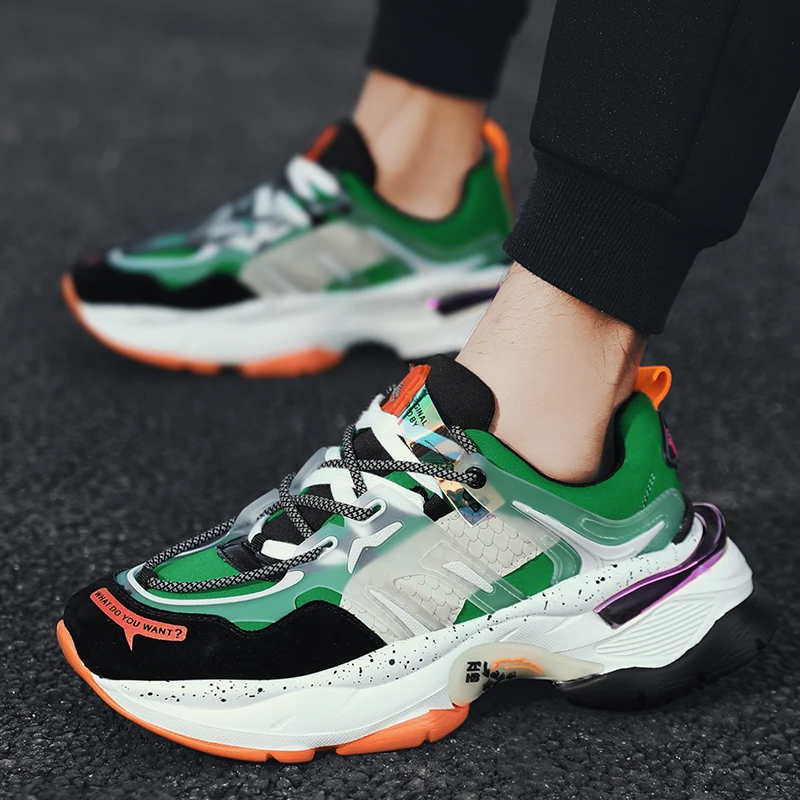 Free shipping Men Dorky Dad Sneakers Cool Trend Thick Sole Platform Round Toe Mixed Color Trainer Running Sport S